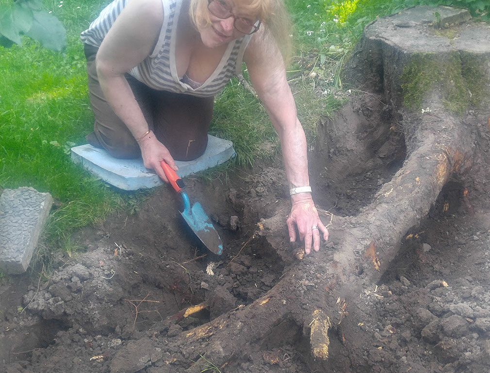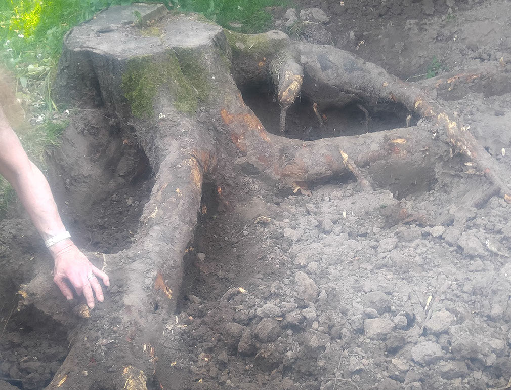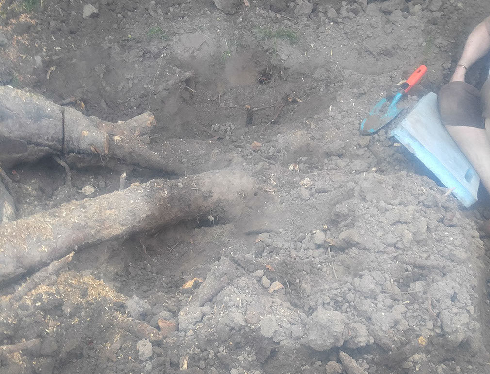 Freilegen der Wurzel oft nur mit kleinen Werkezug möglich ...