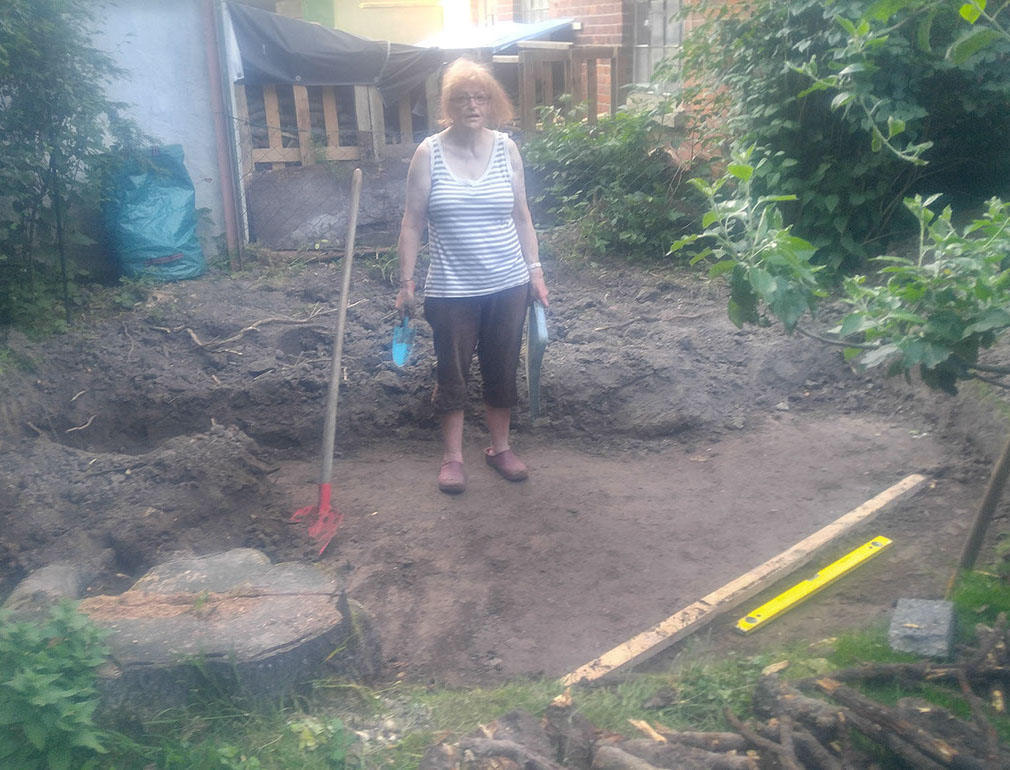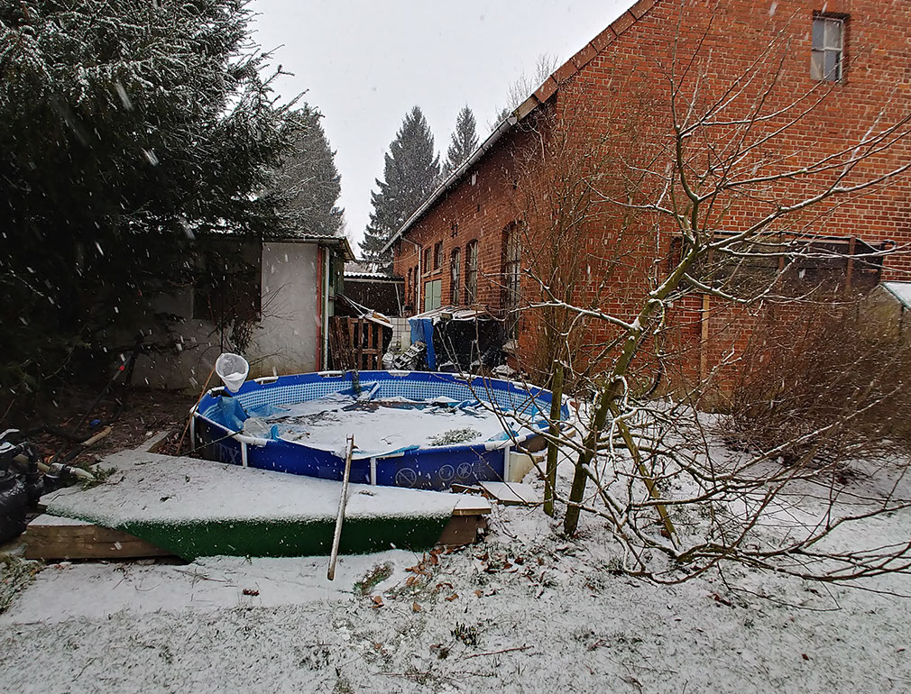 Hier haben wir ein paar Fotos für Sie zusammengestellt, die wir bei dem Aufbau unseres Schwimmbads am neuen Standort aufgenommen haben, angefangen von der Entfernung der Wurzeln des alten Kirschbaumes bis hin zum Aushub der Erde - das Schwimmbad sollte zur Hälte in der Erde verschwinden - und zur Planierung und Aufbau des Schwimmbades.