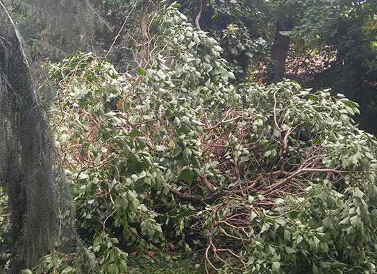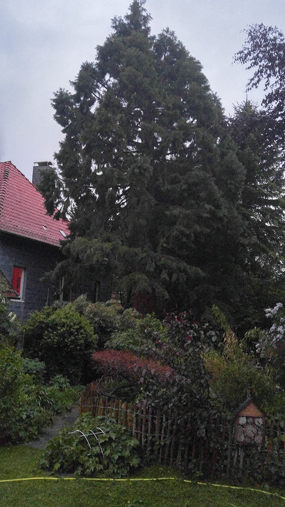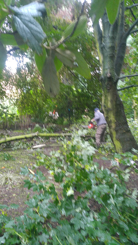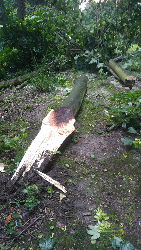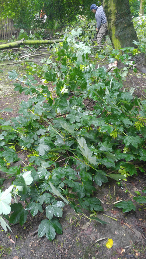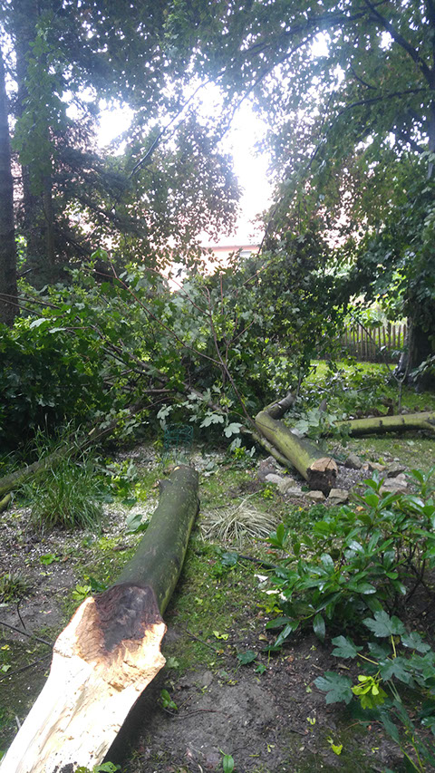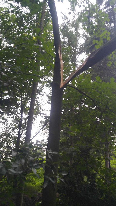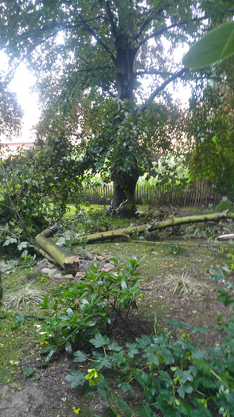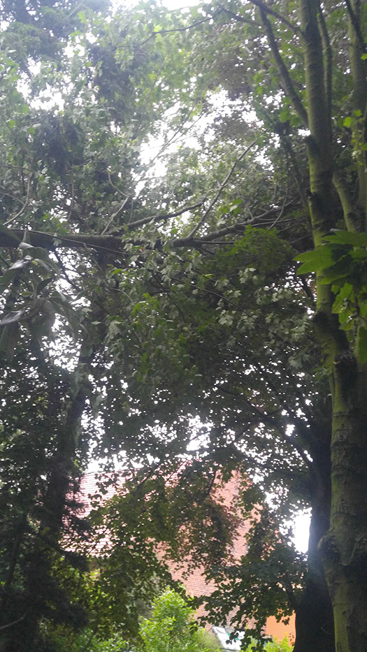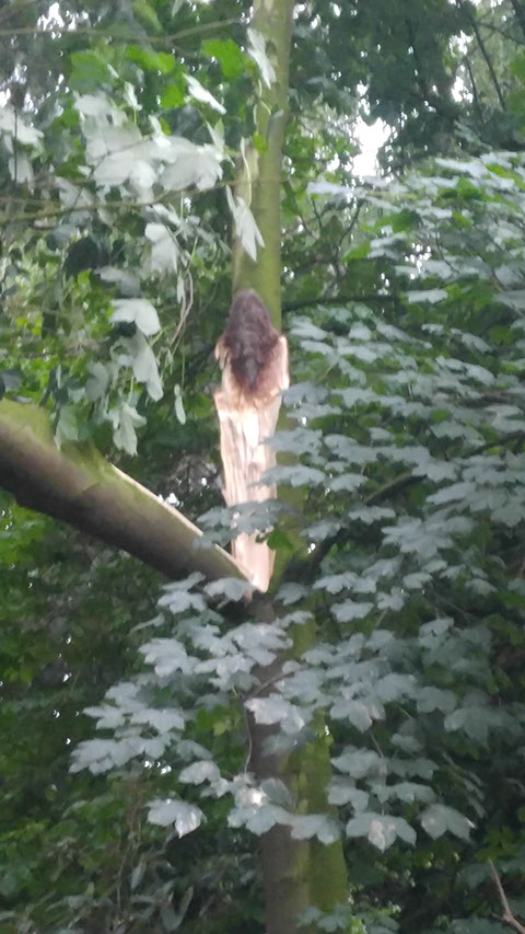 Bei schwerem Sturm am 24.06.2016 wurde ein Ahornbaum stark beschädigt.