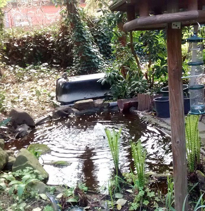 hier: Blick auf den neu gestalteten kleinen Teich vor der Grillhütte