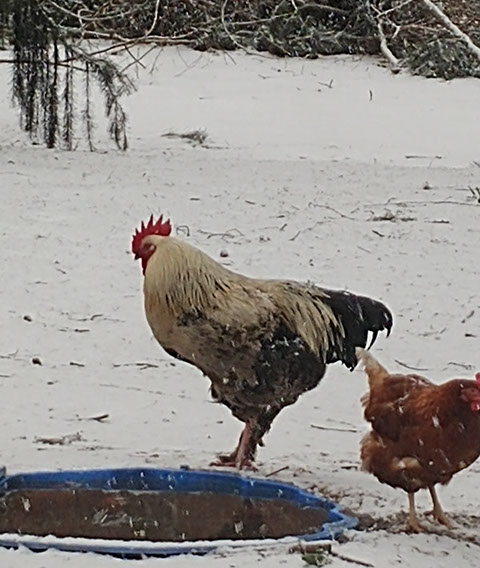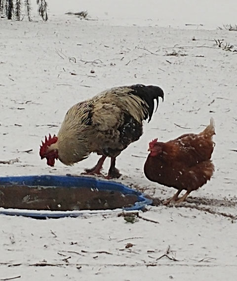 Seit heute, dem 04.02.2018, haben unsere Tiere im Waldgarten neue Freunde dazubekommen: 1 junges Huhn und 1 jungen Hahn Sie fühlen sich sichtlich wohl.