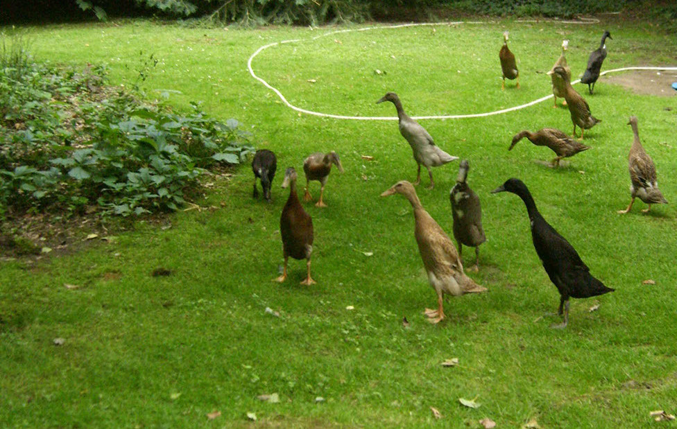 Aufgrund der Beschränkungen durch die Vogelgrippe müssen die Laufenten auf ihren weitläufigen Garten verzichten und bleiben eingesperrt - vorerst bis 31.01.2017